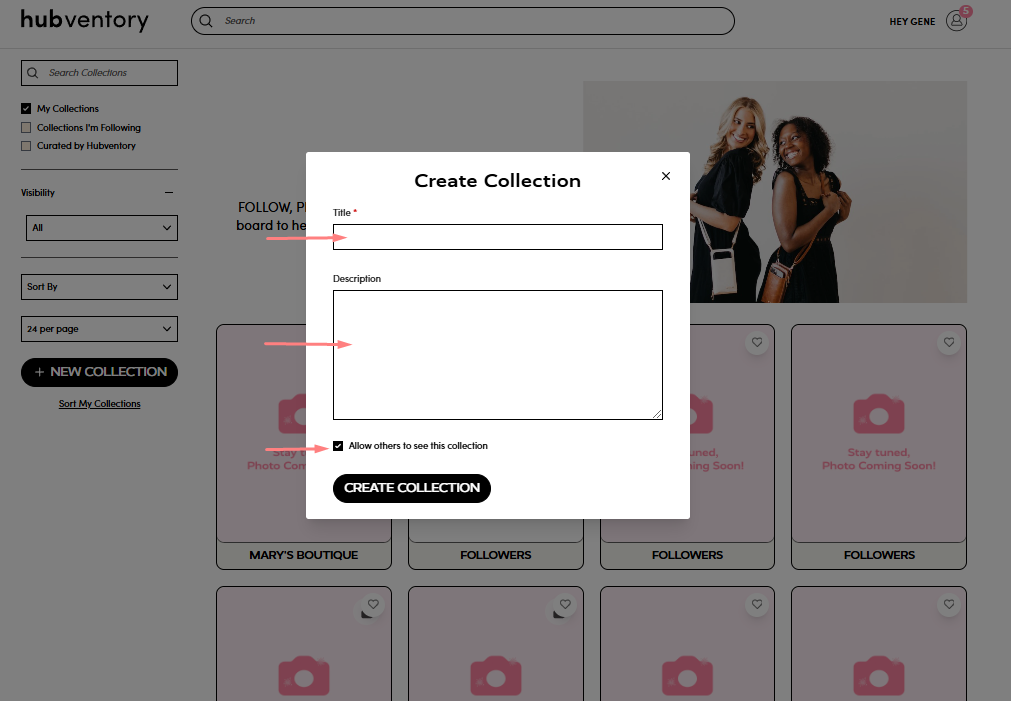 3. On the next page, enter the collection name, add a description, and make sure to check the box that allows others (brands who follow you and retailers) to see the collection.