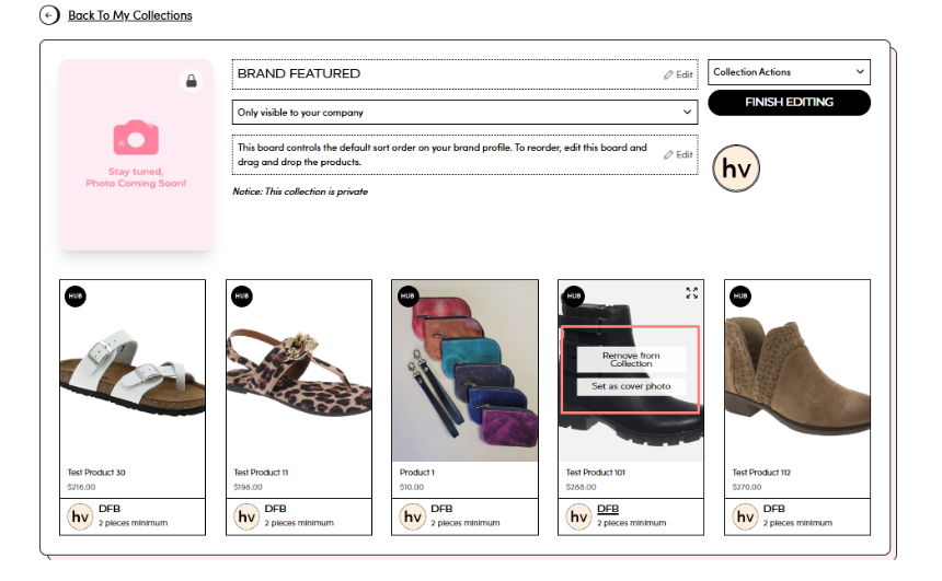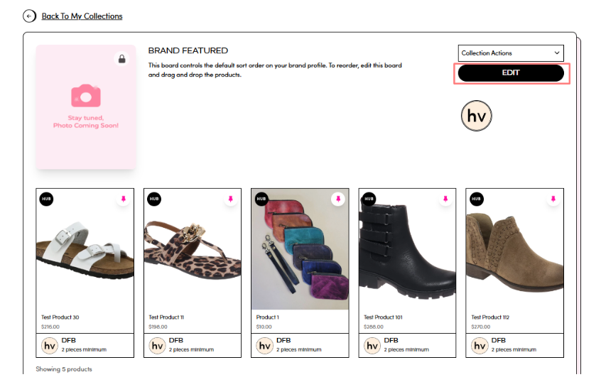 To feature specific products on your profile, simply add them to your Brand Featured Collection. Any products added to this Collection will be highlighted on your brand’s main page. Here’s how you can do it: Please click here.